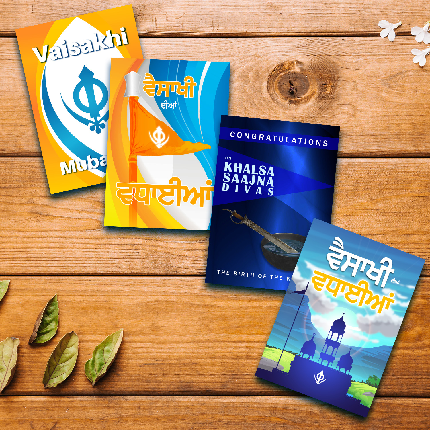 The full collection of our current four Vaisakhi cards, as a set.